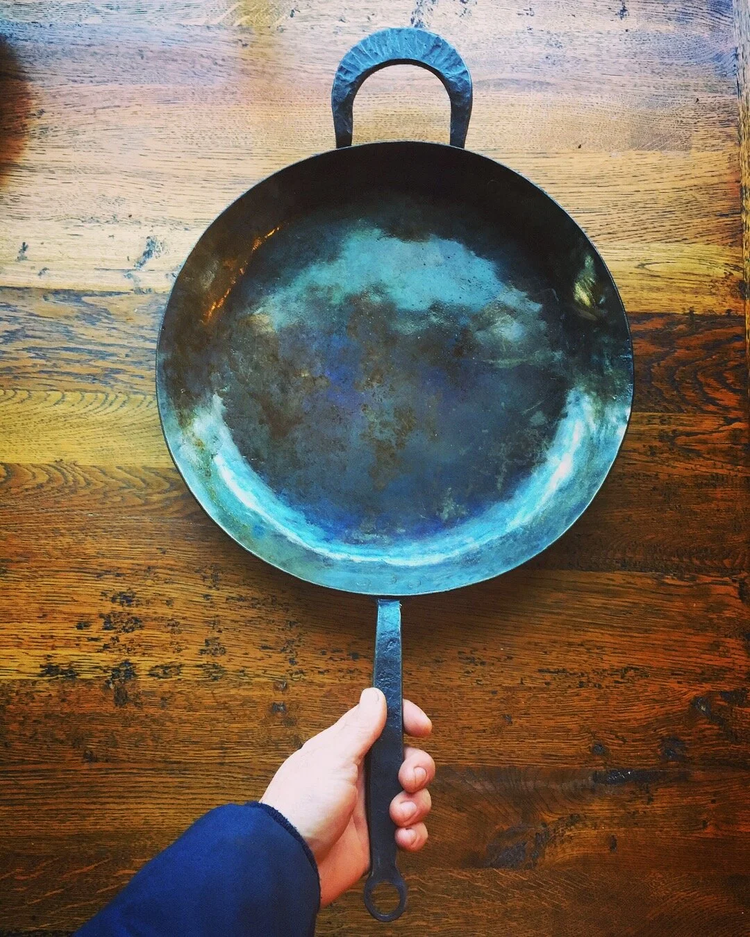 In December of 2018 artist blacksmith Dennis Kehoe made his wife Kasey a carbon steel pan as a Christmas gift. After using the pan for a couple of weeks and loving how it performed and how it looked, Dennis decided to build a few more. Quickly selling the first small batch Dennis and Kasey decided to launch the new business. They already owned and operated a custom metalworking business specializing in hand forged architectural ironwork and sculptural pieces. It didn’t take long for the two to design their line of skillets, build the tooling and go into production. Kehoe Carbon Cookware was born!